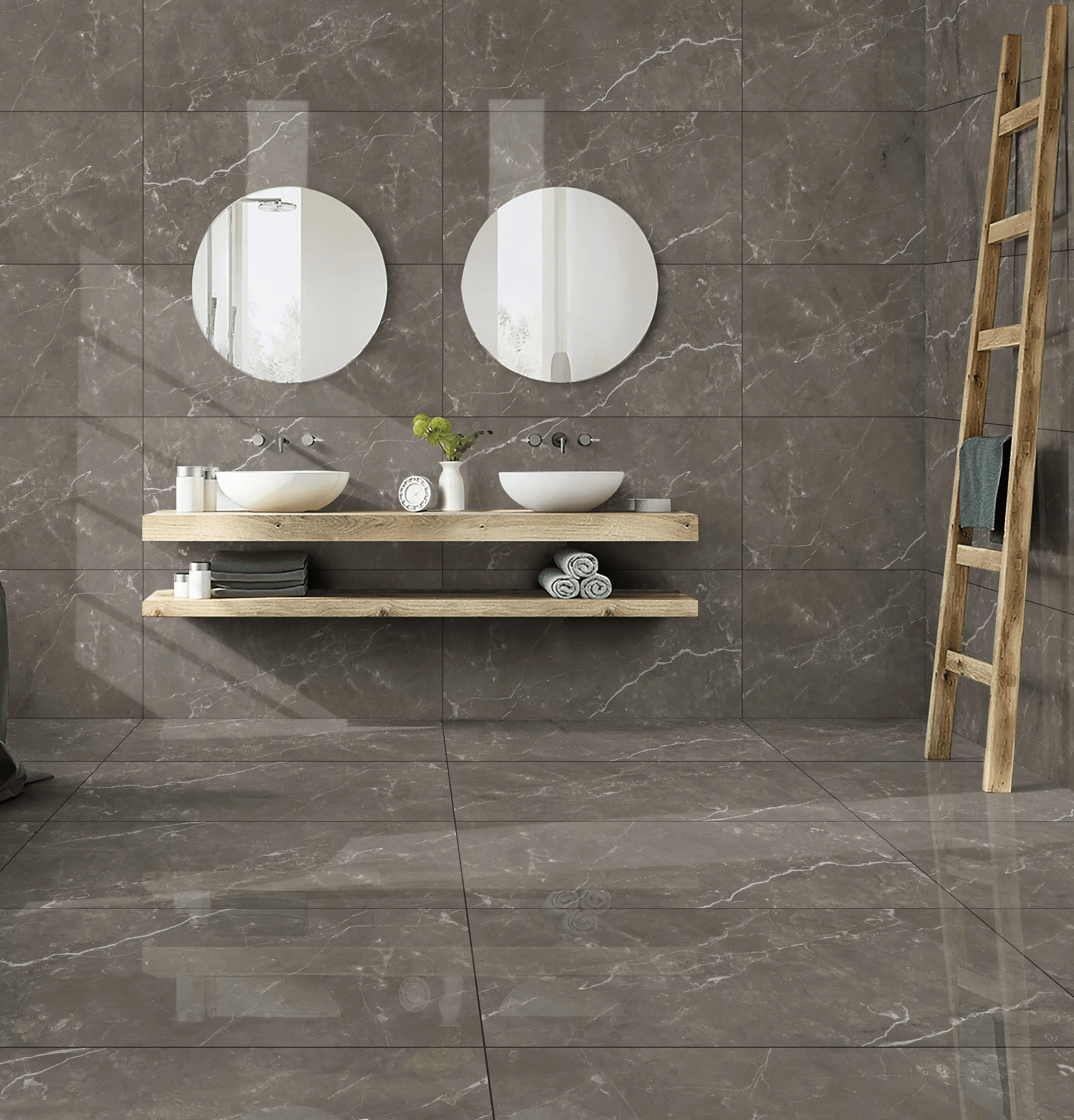 Polished and Glazed, both are good options for Porcelain tiles. Porcelain’s thick, tough surface has made polishing an effective substitute for a glazed surface. As a result, a tile can be fired, polished, and then painted to create a gloss without a glaze. However, unlike regular glazed tiles, polished porcelain may require sealing.